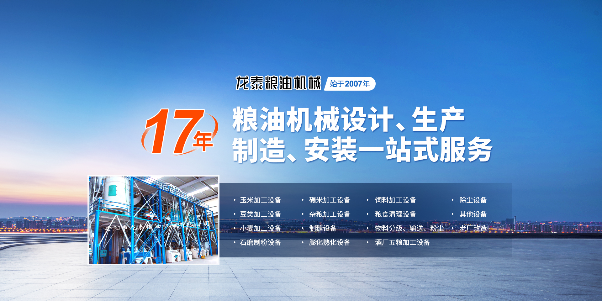 安陽市龍泰糧油機械有限公司是一個集糧油機械設計、生產制作、安裝于一體的設備制造商。公司坐落于農業生產基地河南省安陽市。多年來,公司與科研機構建立了廣泛的技術協作關系,精心致力于糧食加工設備的技術創新與應用,產品涵蓋整套碾米機械、小麥加工設備、玉米加工設備、雜糧加工設備,飼料加工及油脂設備等多個領域。可承接全套的交鑰匙工程,提供從資金預算,整體規劃,土建設計,設備制造、安裝、培訓,售后保障等一站式服務。  我公司擁有獨立自主進出口權及產品原產地注冊證書。產品除國內市場外,多次出口到,亞洲,非洲,南美洲、東歐等多個國家及地區。為國內外多家企業提供了工藝先進,技術過硬,節能的糧油設備,深得國內外客戶的一致好評。  公司以“質量就是生命”為宗旨,根據客戶不同需求,采用合理的技術方案,為客戶量身打造投資建廠方略,爭取實現高收益。公司生產過程嚴格按照合同和圖紙設計要求,生產符合設計標準、檢測標準、質量優良的產品供給客戶,并提供安裝、調試、培訓,保修期免費維修,終身免費咨詢等服務,確保設備在長期使用中穩定運行。  龍泰-愿與您一起攜手共創輝煌!